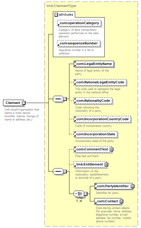 | children | com:LegalEntityName com:NationalLegalEntityCode com:NationalityCode com:IncorporationCountryCode com:IncorporationState com:CommentText tmk:Entitlement com:PartyIdentifier com:Contact | |||||||||||||||||||||||||||||||||