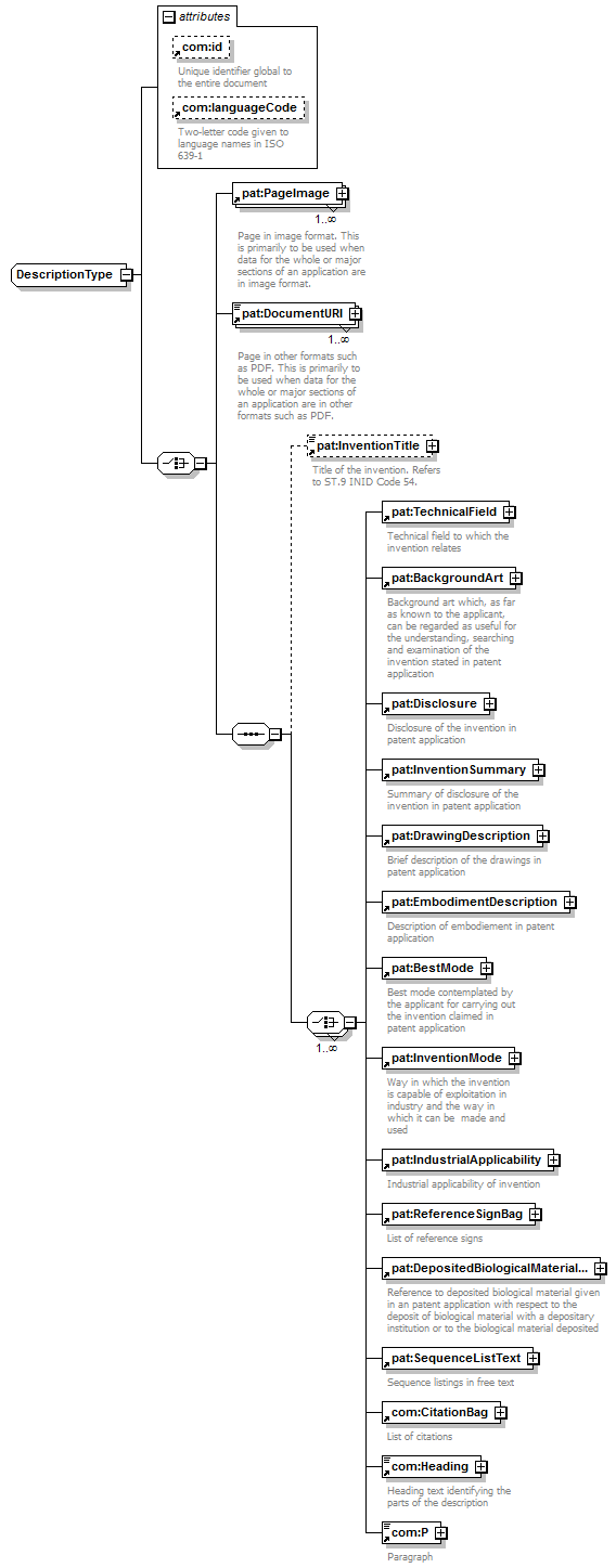 pat:PageImage pat:DocumentURI pat:InventionTitle pat:TechnicalField pat:BackgroundArt pat:Disclosure pat:InventionSummary pat:DrawingDescription pat:EmbodimentDescription pat:BestMode pat:InventionMode pat:IndustrialApplicability pat:ReferenceSignBag pat:DepositedBiologicalMaterialReference pat:SequenceListText com:CitationBag com:Heading com:P |