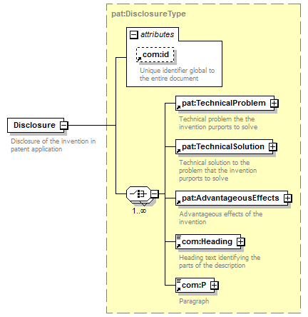 | source | <xsd:element name="Disclosure" type="pat:DisclosureType"> <xsd:annotation>