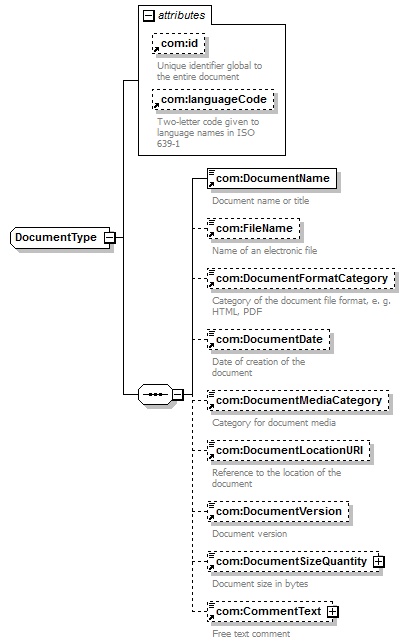 com:DocumentName com:FileName com:DocumentFormatCategory com:DocumentDate com:DocumentMediaCategory com:DocumentLocationURI com:DocumentVersion com:DocumentSizeQuantity com:CommentText |