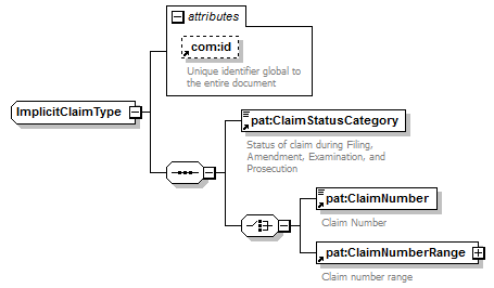 <xsd:choice> <xsd:element ref="pat:ClaimNumber"/> <xsd:element ref="pat:ClaimNumberRange"/> </xsd:choice> |
