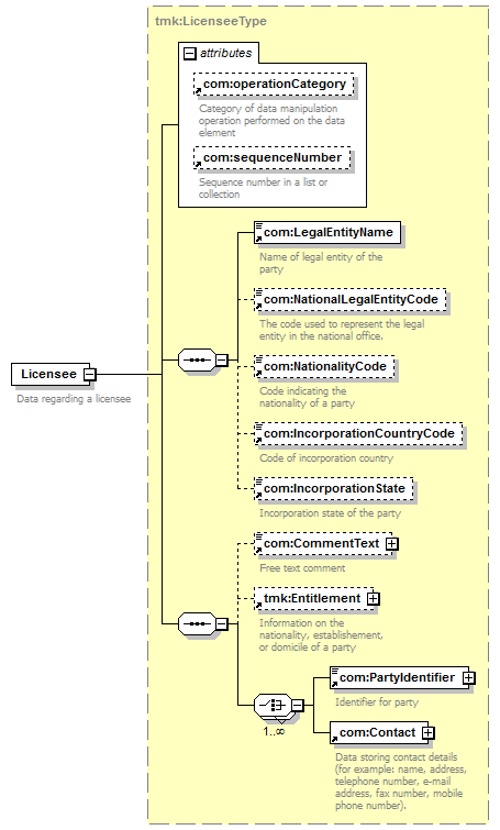 | children | com:LegalEntityName com:NationalLegalEntityCode com:NationalityCode com:IncorporationCountryCode com:IncorporationState com:CommentText tmk:Entitlement com:PartyIdentifier com:Contact | |||||||||||||||||||||||||||||||||
