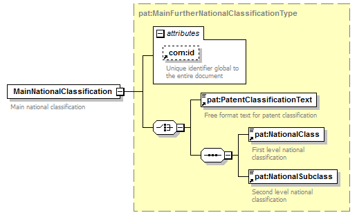 | source | <xsd:element name="MainNationalClassification" type="pat:MainFurtherNationalClassificationType"> <xsd:annotation>