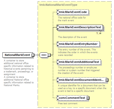 | children | tmk:MarkEventCode tmk:MarkEventDescriptionText tmk:MarkEventEntryNumber tmk:MarkEventAdditionalText tmk:MarkEventDocumentIdentifier com:CommentText | ||||