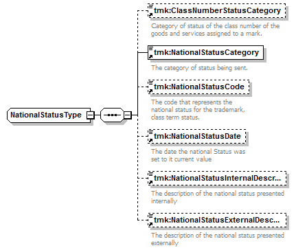 tmk:ClassNumberStatusCategory tmk:NationalStatusCategory tmk:NationalStatusCode tmk:NationalStatusDate tmk:NationalStatusInternalDescriptionText tmk:NationalStatusExternalDescriptionText |