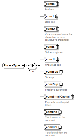 <xsd:complexType name="PhraseType" mixed="true"> <xsd:choice minOccurs="0" maxOccurs="unbounded">