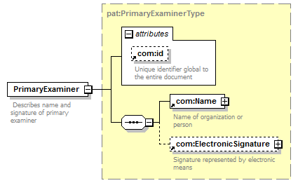 | source | <xsd:element name="PrimaryExaminer" type="pat:PrimaryExaminerType"> <xsd:annotation>