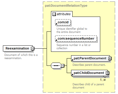 | source | <xsd:element name="Reexamination" type="pat:DocumentRelationType"> <xsd:annotation>