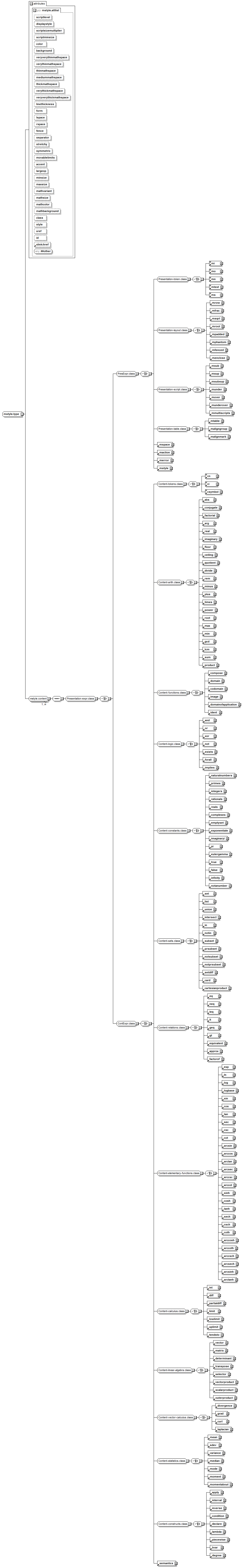 <xsd:complexType name="mstyle.type"> <xsd:group ref="mstyle.content" minOccurs="1" maxOccurs="unbounded"/> <xsd:attributeGroup ref="mstyle.attlist"/> </xsd:complexType> |