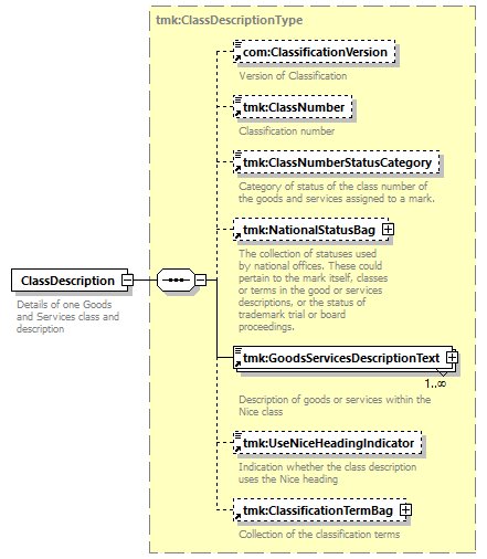 | children | com:ClassificationVersion tmk:ClassNumber tmk:ClassNumberStatusCategory tmk:NationalStatusBag tmk:GoodsServicesDescriptionText tmk:UseNiceHeadingIndicator tmk:ClassificationTermBag | ||||