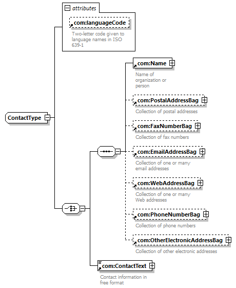 | children | com:Name com:PostalAddressBag com:FaxNumberBag com:EmailAddressBag com:WebAddressBag com:PhoneNumberBag com:OtherElectronicAddressBag com:ContactText | ||||||||||||||||||||||