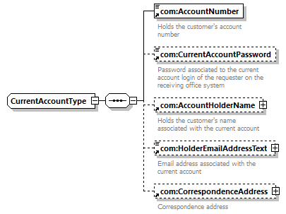 | children | com:AccountNumber com:CurrentAccountPassword com:AccountHolderName com:HolderEmailAddressText com:CorrespondenceAddress | ||||