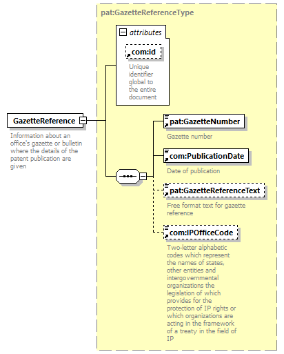 | children | pat:GazetteNumber com:PublicationDate pat:GazetteReferenceText com:IPOfficeCode | ||||||||||||||||||||||
