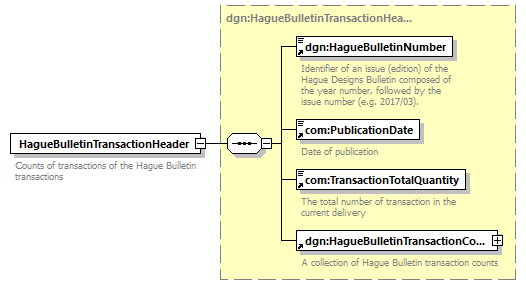 | children | dgn:HagueBulletinNumber com:PublicationDate com:TransactionTotalQuantity dgn:HagueBulletinTransactionCountBag | ||||