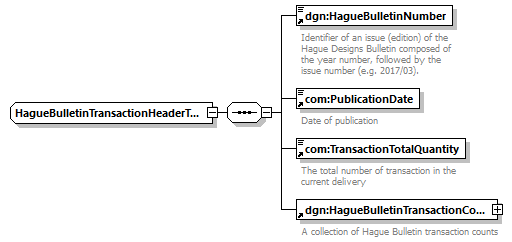 | children | dgn:HagueBulletinNumber com:PublicationDate com:TransactionTotalQuantity dgn:HagueBulletinTransactionCountBag | ||||