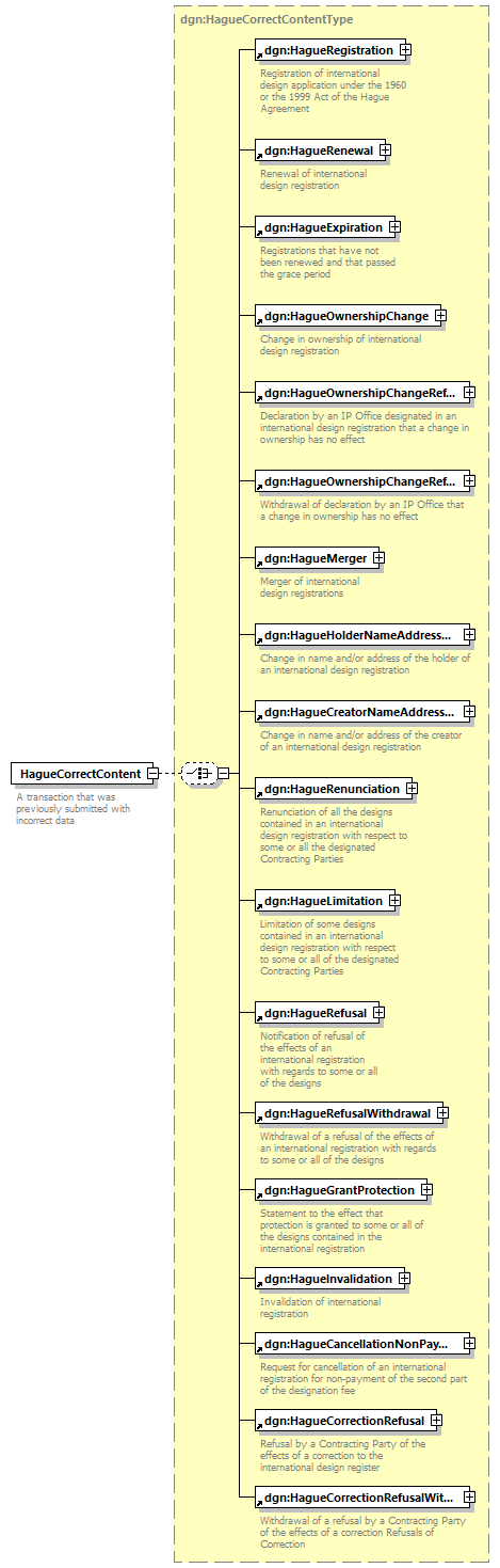 | children | dgn:HagueRegistration dgn:HagueRenewal dgn:HagueExpiration dgn:HagueOwnershipChange dgn:HagueOwnershipChangeRefusal dgn:HagueOwnershipChangeRefusalWithdrawal dgn:HagueMerger dgn:HagueHolderNameAddressChange dgn:HagueCreatorNameAddressChange dgn:HagueRenunciation dgn:HagueLimitation dgn:HagueRefusal dgn:HagueRefusalWithdrawal dgn:HagueGrantProtection dgn:HagueInvalidation dgn:HagueCancellationNonPayment dgn:HagueCorrectionRefusal dgn:HagueCorrectionRefusalWithdrawal | ||||