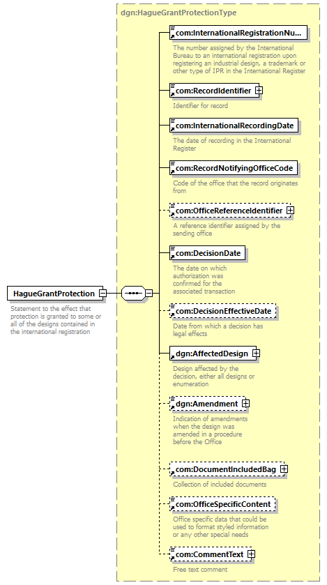 | children | com:InternationalRegistrationNumber com:RecordIdentifier com:InternationalRecordingDate com:RecordNotifyingOfficeCode com:OfficeReferenceIdentifier com:DecisionDate com:DecisionEffectiveDate dgn:AffectedDesign dgn:Amendment com:DocumentIncludedBag com:OfficeSpecificContent com:CommentText | ||||
