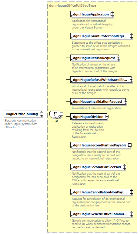 | children | dgn:HagueApplication dgn:HagueGrantProtectionRequest dgn:HagueRefusalRequest dgn:HagueRefusalWithdrawalRequest dgn:HagueInvalidationRequest dgn:HagueDivision dgn:HagueSecondPartFeePayable dgn:HagueSecondPartFeePaid dgn:HagueCancellationNonPaymentRequest dgn:HagueGenericOfficeCommunication | ||||