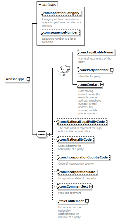 | children | com:LegalEntityName com:PartyIdentifier com:Contact com:NationalLegalEntityCode com:NationalityCode com:IncorporationCountryCode com:IncorporationState com:CommentText tmk:Entitlement | |||||||||||||||||||||||||||||||||