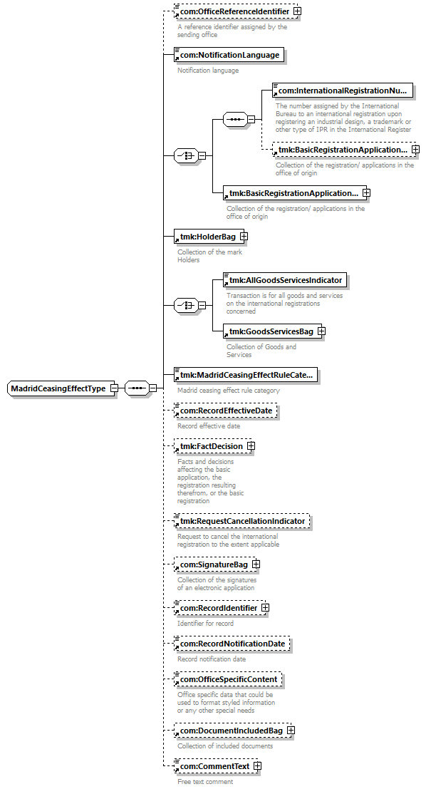 | children | com:OfficeReferenceIdentifier com:NotificationLanguage com:InternationalRegistrationNumber tmk:BasicRegistrationApplicationBag tmk:HolderBag tmk:AllGoodsServicesIndicator tmk:GoodsServicesBag tmk:MadridCeasingEffectRuleCategory com:RecordEffectiveDate tmk:FactDecision tmk:RequestCancellationIndicator com:SignatureBag com:RecordIdentifier com:RecordNotificationDate com:OfficeSpecificContent com:DocumentIncludedBag com:CommentText | ||||
