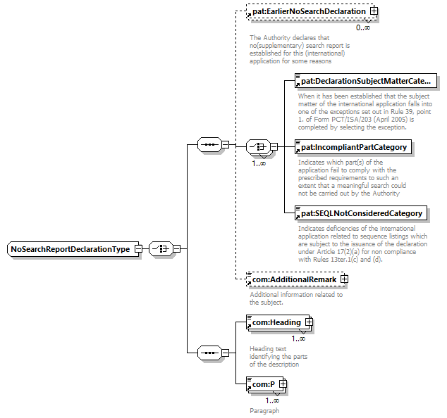 | children | pat:EarlierNoSearchDeclaration pat:DeclarationSubjectMatterCategory pat:IncompliantPartCategory pat:SEQLNotConsideredCategory com:AdditionalRemark com:Heading com:P | ||||
