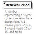 A number representing a 5-year cycle of renewal for a design right. A 1 means years 5-10, a 2 means years 10 to 15, and so on </xsd:documentation>