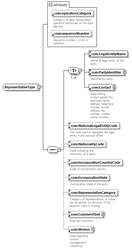 | children | com:LegalEntityName com:PartyIdentifier com:Contact com:NationalLegalEntityCode com:NationalityCode com:IncorporationCountryCode com:IncorporationState com:RepresentativeCategory com:CommentText com:Version | |||||||||||||||||||||||||||||||||
