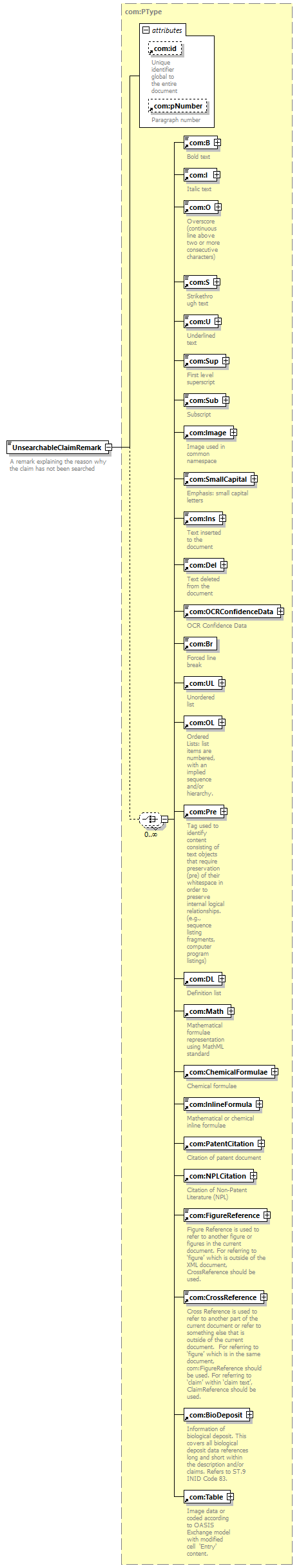 | source | <xsd:element name="UnsearchableClaimRemark" type="com:PType">