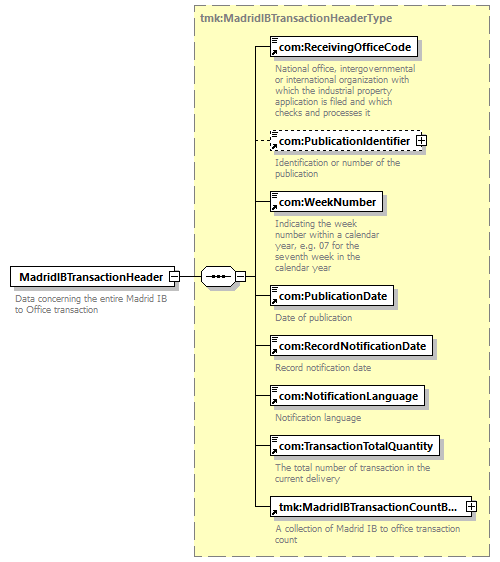 | children | com:ReceivingOfficeCode com:PublicationIdentifier com:WeekNumber com:PublicationDate com:RecordNotificationDate com:NotificationLanguage com:TransactionTotalQuantity tmk:MadridIBTransactionCountBag |