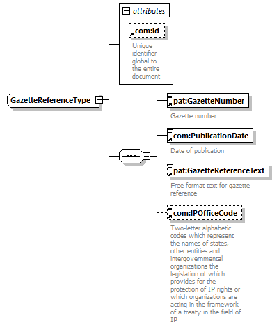| children | pat:GazetteNumber com:PublicationDate pat:GazetteReferenceText com:IPOfficeCode | ||||||||||||||||||||||