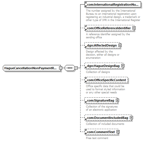 | children | com:InternationalRegistrationNumber com:OfficeReferenceIdentifier dgn:AffectedDesign dgn:HagueDesignBag com:OfficeSpecificContent com:SignatureBag com:DocumentIncludedBag com:CommentText | ||||
