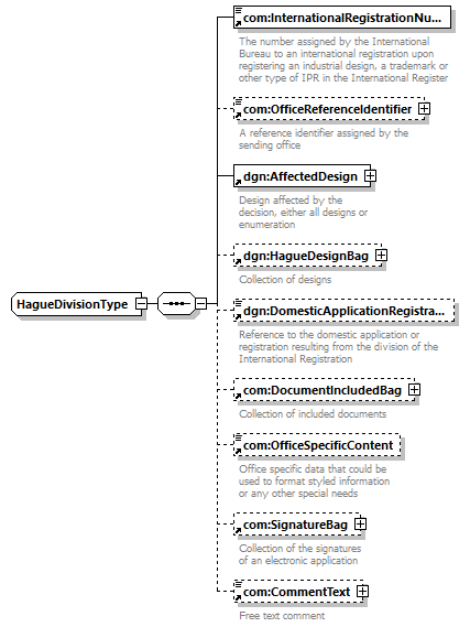 | children | com:InternationalRegistrationNumber com:OfficeReferenceIdentifier dgn:AffectedDesign dgn:HagueDesignBag dgn:DomesticApplicationRegistrationReference com:DocumentIncludedBag com:OfficeSpecificContent com:SignatureBag com:CommentText | ||||