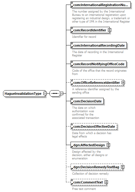 | children | com:InternationalRegistrationNumber com:RecordIdentifier com:InternationalRecordingDate com:RecordNotifyingOfficeCode com:OfficeReferenceIdentifier com:DecisionDate com:DecisionEffectiveDate dgn:AffectedDesign dgn:DecisionRemedyTextBag com:CommentText | ||||