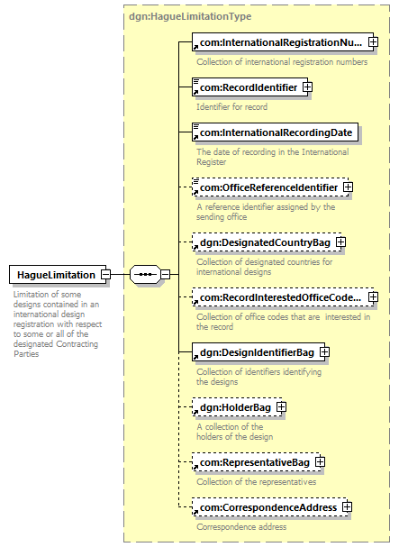 | children | com:InternationalRegistrationNumberBag com:RecordIdentifier com:InternationalRecordingDate com:OfficeReferenceIdentifier dgn:DesignatedCountryBag com:RecordInterestedOfficeCodeBag dgn:DesignIdentifierBag dgn:HolderBag com:RepresentativeBag com:CorrespondenceAddress | ||||