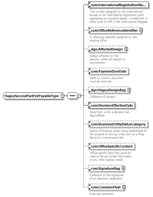 | children | com:InternationalRegistrationNumber com:OfficeReferenceIdentifier dgn:AffectedDesign com:PaymentDueDate dgn:HagueDesignBag com:DecisionEffectiveDate com:BusinessEntityStatusCategory com:OfficeSpecificContent com:SignatureBag com:CommentText | ||||