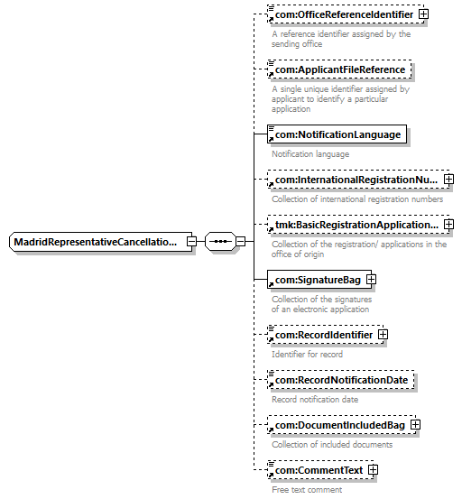 | children | com:OfficeReferenceIdentifier com:ApplicantFileReference com:NotificationLanguage com:InternationalRegistrationNumberBag tmk:BasicRegistrationApplicationBag com:SignatureBag com:RecordIdentifier com:RecordNotificationDate com:DocumentIncludedBag com:CommentText | ||||