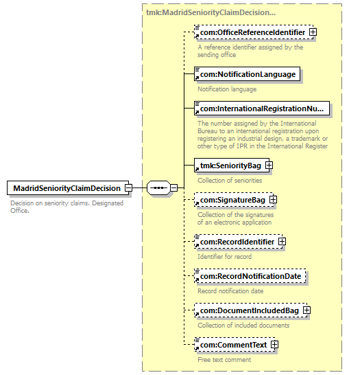 | children | com:OfficeReferenceIdentifier com:NotificationLanguage com:InternationalRegistrationNumber tmk:SeniorityBag com:SignatureBag com:RecordIdentifier com:RecordNotificationDate com:DocumentIncludedBag com:CommentText | ||||