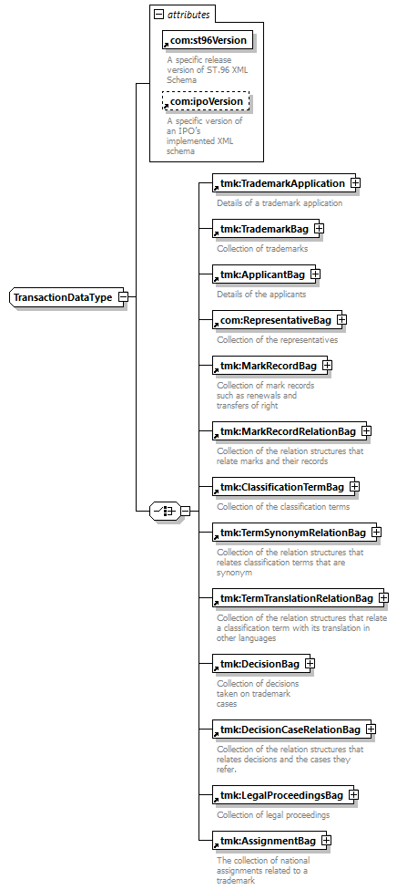 | namespace | http://www.wipo.int/standards/XMLSchema/ST96/Trademark | |||||||||||||||||||||||||||||||||