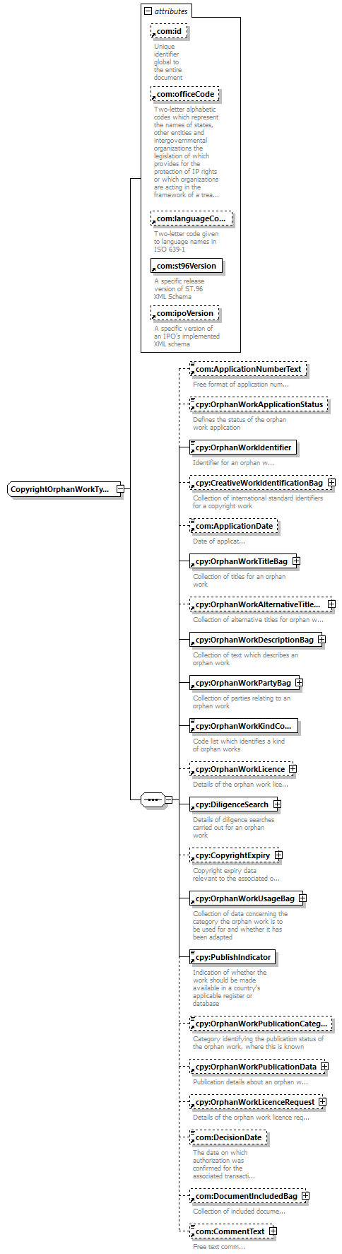 | children | com:ApplicationNumberText cpy:OrphanWorkApplicationStatus cpy:OrphanWorkIdentifier cpy:CreativeWorkIdentificationBag com:ApplicationDate cpy:OrphanWorkTitleBag cpy:OrphanWorkAlternativeTitleBag cpy:OrphanWorkDescriptionBag cpy:OrphanWorkPartyBag cpy:OrphanWorkKindCode cpy:OrphanWorkLicence cpy:DiligenceSearch cpy:CopyrightExpiry cpy:OrphanWorkUsageBag cpy:PublishIndicator cpy:OrphanWorkPublicationCategory cpy:OrphanWorkPublicationData cpy:OrphanWorkLicenceRequest com:DecisionDate com:DocumentIncludedBag com:CommentText | ||||||||||||||||||||||||||||||||||||||||||||||||||||||||||||||||||