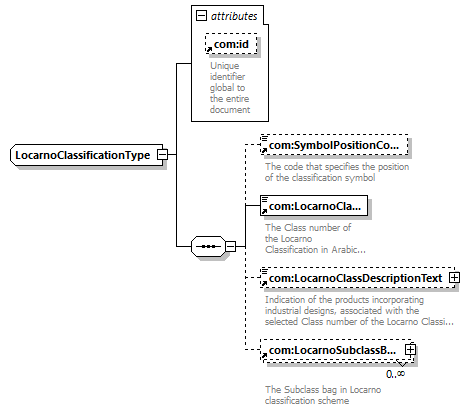 | children | com:SymbolPositionCode com:LocarnoClass com:LocarnoClassDescriptionText com:LocarnoSubclassBag | ||||||||||||||||||||||