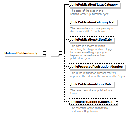 | children | tmk:PublicationStatusCategory tmk:PublicationCategoryText tmk:PublicationActionDate tmk:ProposedRegistrationNumber tmk:PublicationNoticeDate tmk:RegistrationChangeBag | ||||