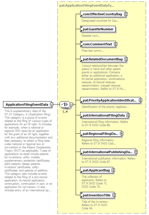 | children | com:EffectiveCountryBag pat:GazetteNumber com:CommentText pat:RelatedDocumentBag pat:PriorityApplicationIdentification pat:InternationalFilingData pat:RegionalFilingData pat:InternationalPublishingData pat:ApplicantBag pat:InventionTitle | ||||
