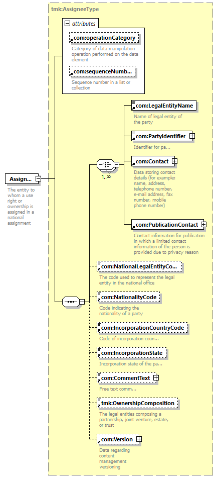 | children | com:LegalEntityName com:PartyIdentifier com:Contact com:PublicationContact com:NationalLegalEntityCode com:NationalityCode com:IncorporationCountryCode com:IncorporationState com:CommentText tmk:OwnershipComposition com:Version | |||||||||||||||||||||||||||||||||