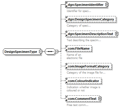 | children | dgn:SpecimenIdentifier dgn:DesignSpecimenCategory dgn:SpecimenDescriptionText com:FileName com:ImageFormatCategory com:ColourIndicator com:CommentText | ||||