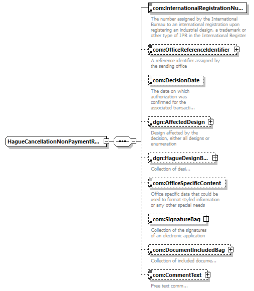 | children | com:InternationalRegistrationNumber com:OfficeReferenceIdentifier com:DecisionDate dgn:AffectedDesign dgn:HagueDesignBag com:OfficeSpecificContent com:SignatureBag com:DocumentIncludedBag com:CommentText | ||||
