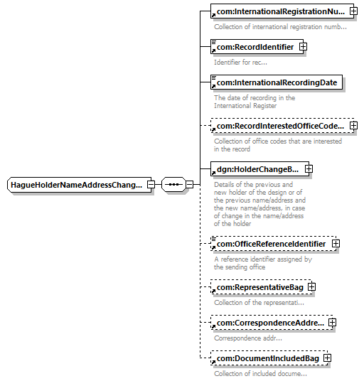 | children | com:InternationalRegistrationNumberBag com:RecordIdentifier com:InternationalRecordingDate com:RecordInterestedOfficeCodeBag dgn:HolderChangeBag com:OfficeReferenceIdentifier com:RepresentativeBag com:CorrespondenceAddress com:DocumentIncludedBag | ||||