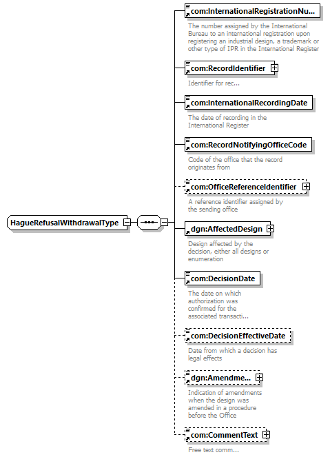| children | com:InternationalRegistrationNumber com:RecordIdentifier com:InternationalRecordingDate com:RecordNotifyingOfficeCode com:OfficeReferenceIdentifier dgn:AffectedDesign com:DecisionDate com:DecisionEffectiveDate dgn:Amendment com:CommentText | ||||
