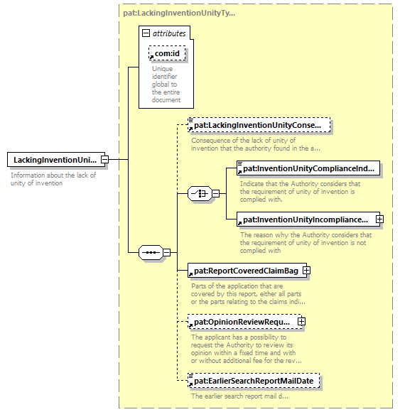 | children | pat:LackingInventionUnityConsequenceCategory pat:InventionUnityComplianceIndicator pat:InventionUnityIncomplianceReason pat:ReportCoveredClaimBag pat:OpinionReviewRequest pat:EarlierSearchReportMailDate | ||||||||||||||||||||||