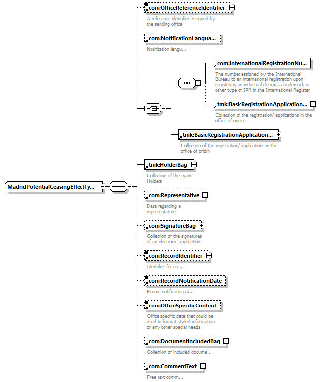 | children | com:OfficeReferenceIdentifier com:NotificationLanguage com:InternationalRegistrationNumber tmk:BasicRegistrationApplicationBag tmk:HolderBag com:Representative com:SignatureBag com:RecordIdentifier com:RecordNotificationDate com:OfficeSpecificContent com:DocumentIncludedBag com:CommentText | ||||