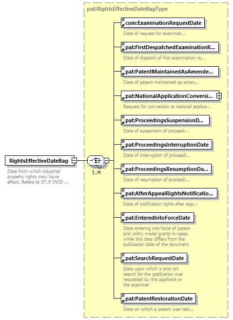 | children | com:ExaminationRequestDate pat:FirstDespatchedExaminationReportDate pat:PatentMaintainedAsAmendedDate pat:NationalApplicationConversionRequest pat:ProceedingsSuspensionDate pat:ProceedingsInterruptionDate pat:ProceedingsResumptionDate pat:AfterAppealRightsNotificationDate pat:EnteredIntoForceDate pat:SearchRequestDate pat:PatentRestorationDate | ||||